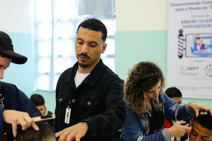 Uma turma de 25 alunos do bairro Bom Jesus, em Porto Alegre, está aprendendo sobre barbearia e empreendedorismo. Os jovens têm entre 16 e 19 anos e foram selecionados para participar de duas oficinas realizadas pela Fundação Tênis, ONG com sede em Porto Alegre. Entre os requisitos, o principal era ter vontade de aprender, destaca Maria Dorilda Vivian Xavier, supervisora do Programa de Educação Profissional da entidade.
