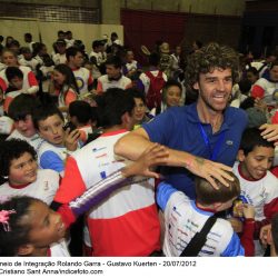 Guga Kuerten, tricampeão de Roland Garros, participa da abertura da quinta edição do Rolando Garra. Os dois núcleos em São Paulo realizam a versão paulista do torneio de integração.